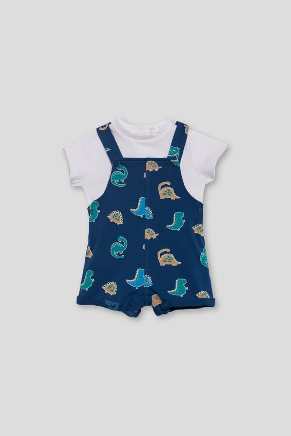 Δύο τεμάχια σετ με κοντομάνικο μπλουζάκι (με κουμπάκια πίσω για ευκολότερη χρήση) και τύπωμα δεινόσαυρο και σαλοπέτα με κλιπς πάνω και κάτω για ευκολότερο άνοιγμα και τύπωμα δεινόσαυρους.